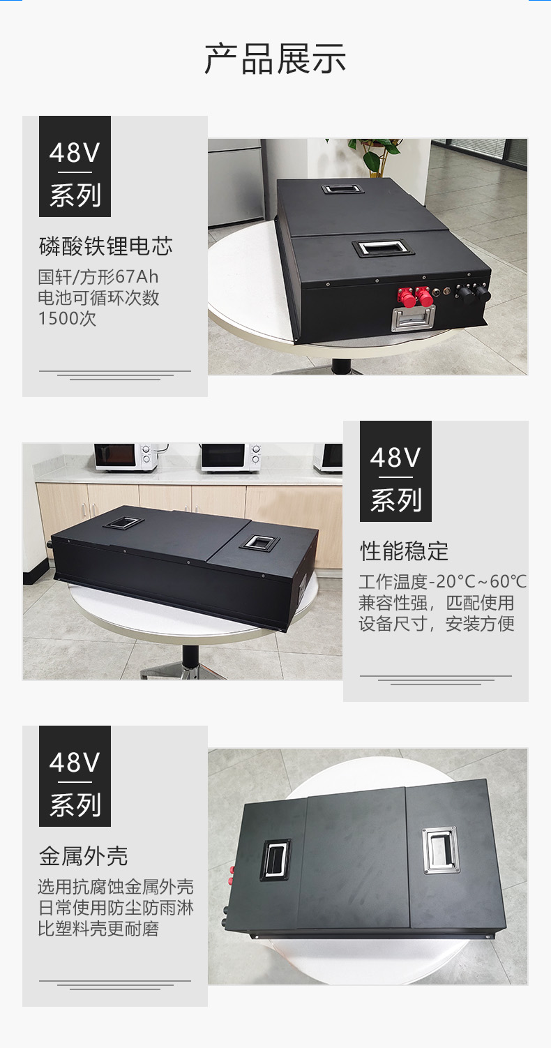 我司提供以下产品服务:24V-48V ,容量10ah-400ah,广泛应用于机器人、AGV、电动叉车、搬运车、高尔夫球车、房车、电动清扫机等,